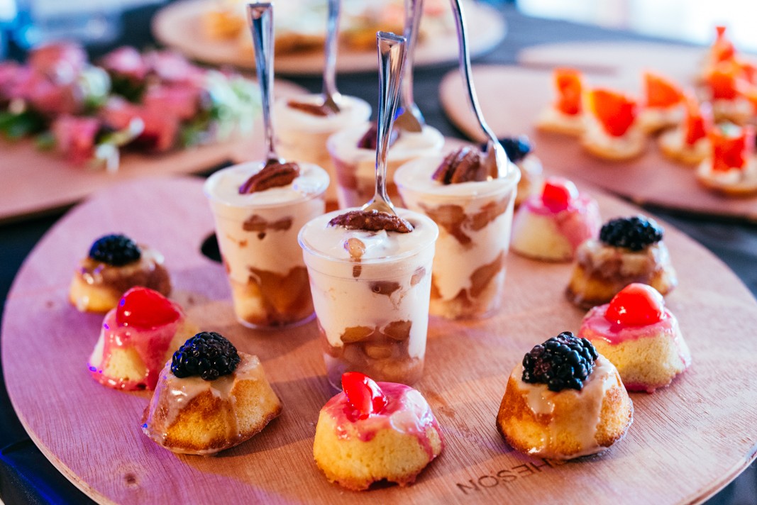 layered with flavored whipped cream & a seasonal fruit relish